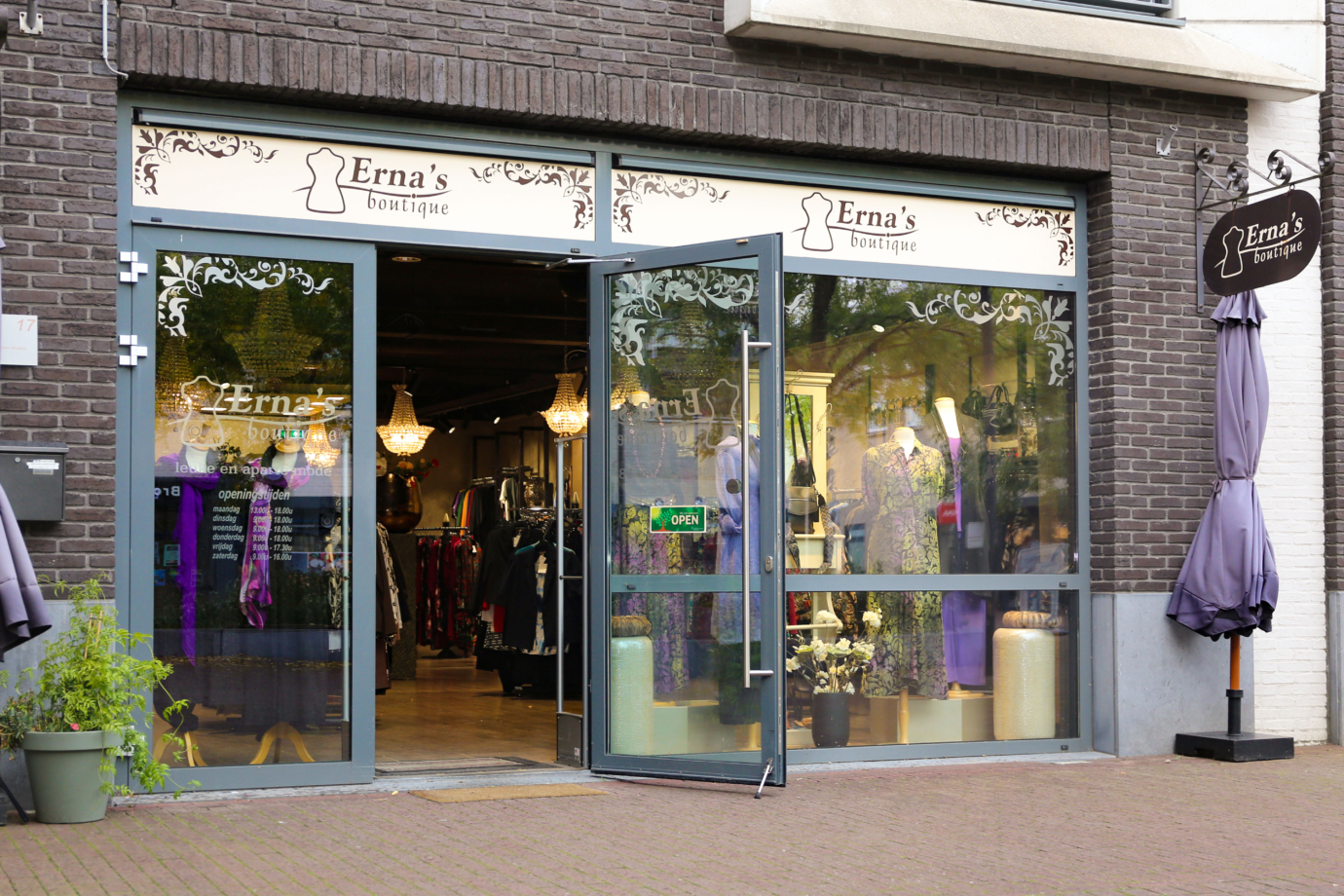 Erna’s Boutique is een gezellige modewinkel voor dames uit de regio. Wij bestaan al sinds 2000 en er is voor ieder wat wils. Voor jong, oud, kleine en grote maten. Leuke én aparte kleding, hippe tassen en trendy sieraden. Elke week hangt er een nieuwe collectie, dus kom vooral regelmatig even een kijkje nemen.